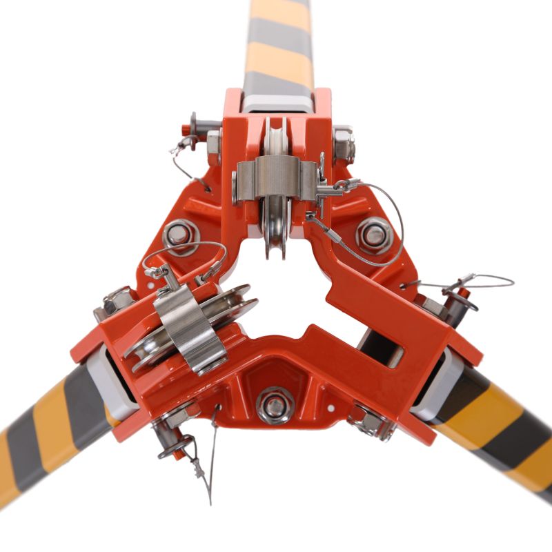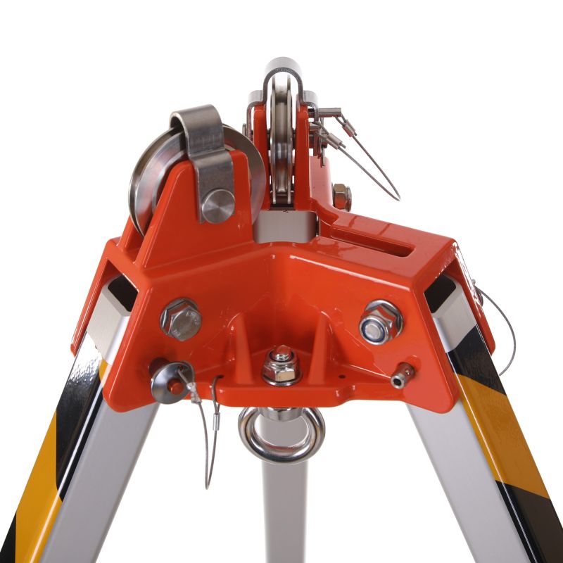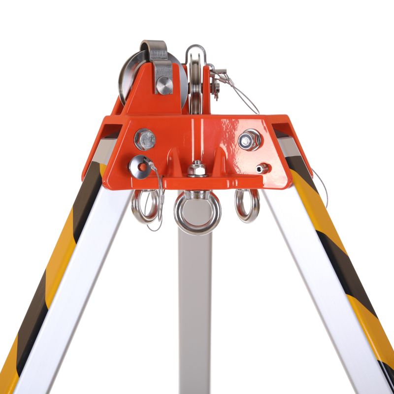 Переносной штатив-тренога имеет точки крепления. Применяется для обеспечения доступа в ограниченном пространстве. В головной части есть дополнительный шкив в продолжении основной ноги для пропуска троса.