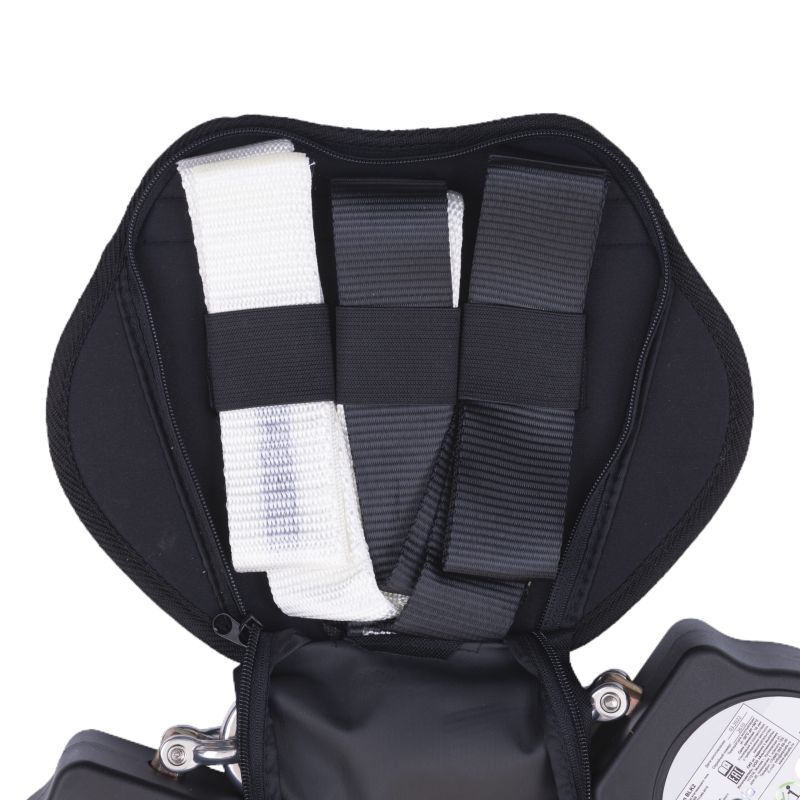 Амортизатор размещён в специальном чехле, дополнительно защищает спину пользователя от ударов корпусом.