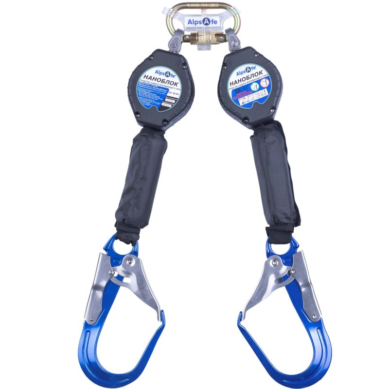 Средство индивидуальной защиты от падения с высоты втягивающего типа (блокирующее устройство) с функцией самоблокировки и автоматическим средством натяжения и возврата втягивающегося троса. Представляет собой соединительно-амортизирующую подсистему и применяется для соединения страховочной привязи с анкерной точкой.